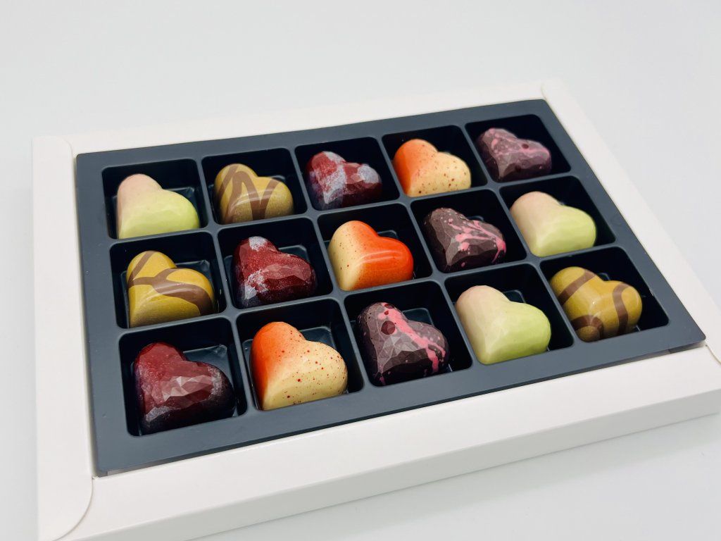 Valentýnská kolekce 15 pralinek, které míchají lásku, vášeň a trochu čokoládového šílenství. Ideální dárek, který se neptá – rovnou svádí.